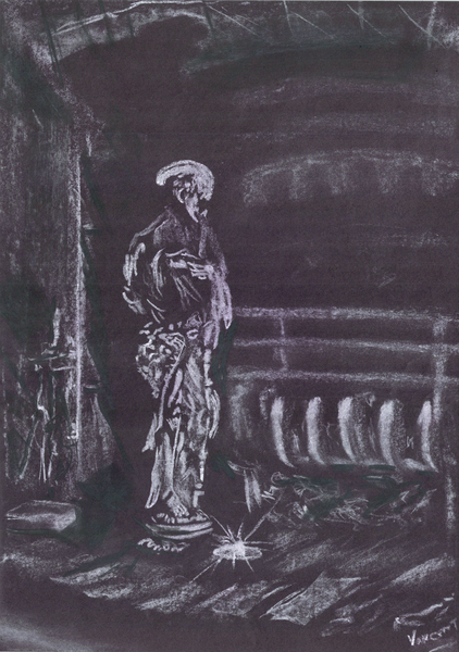 Statue by fireplace in candlelight - Vincent Alexander Booth