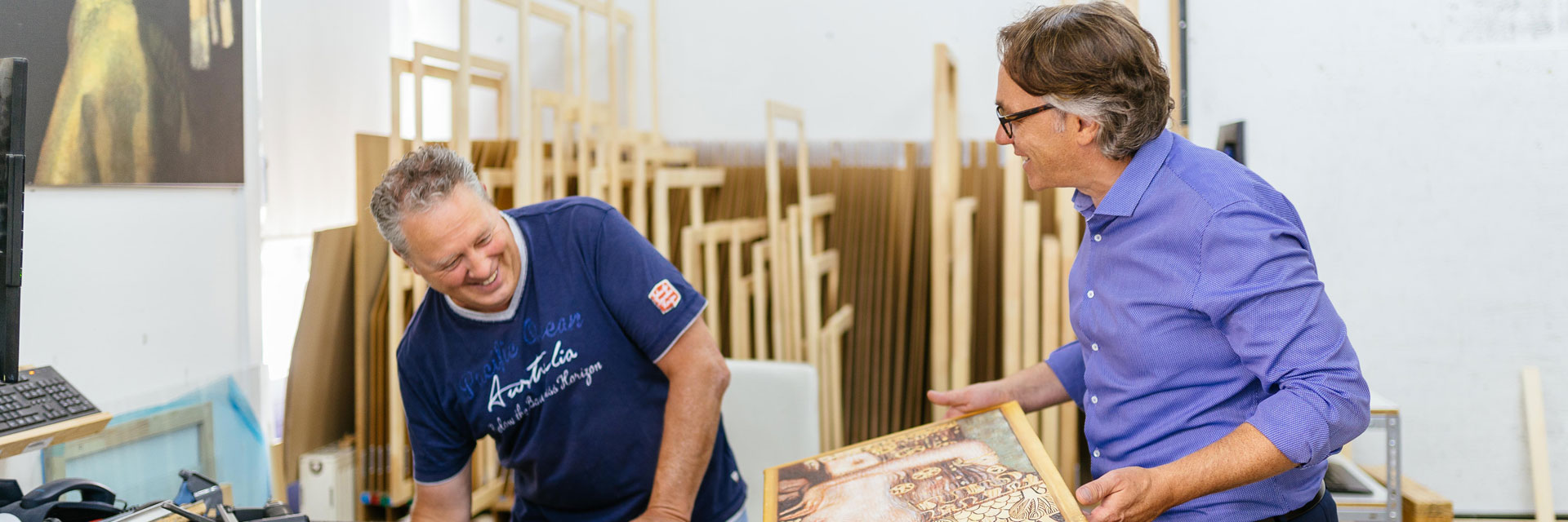 Wir haben unsere Kunstdruckerei in über 30 Jahren Firmengeschichte stets weiterentwickelt und investieren immer wieder in neueste Drucktechnik und moderne digitale Prozesse, bleiben aber der Fertigung in Handarbeit treu. So schaffen wir Effizienz und Qualität zugleich. Dieser Prozess beginnt schon in der Vorbereitung der Druckvorlagen und endet erst bei Abgabe des sicher verpackten Bildes an den Lieferdienst.