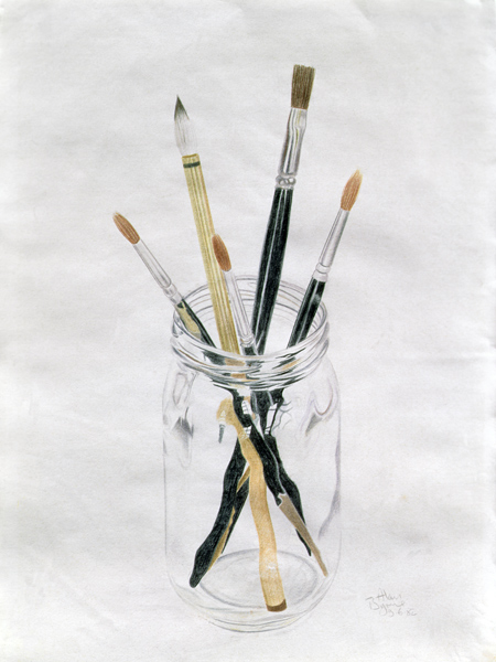 Brushes in a Jar, 1982 (coloured pencil on paper)