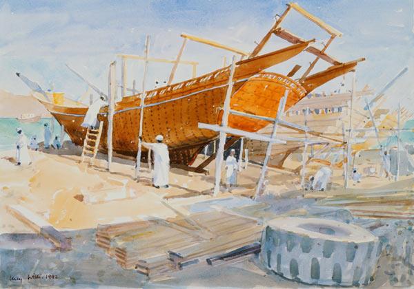 Dhow Yard, Sur, 1992 (w/c)... von Lucy Willis