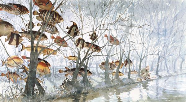 Fly Fishing, 1992 (w/c, co... von Lucy Willis