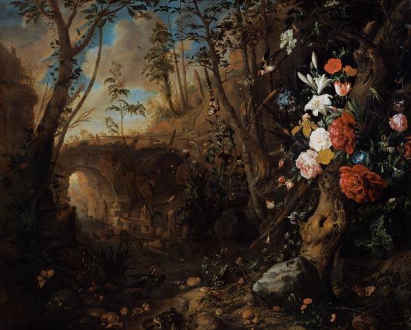 Ein Glas mit Blumen und Or... von Abraham Mignon
