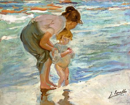 Mutter und Kind am Strand. von Joaquin Sorolla